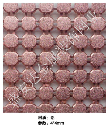 金屬布簾----是多個鋁網片結合而成,網片主要樣式有平面,圓珠,梅花和鉆石等形狀,廣泛用于酒店,咖啡廳,音樂廳,賓館等屏風割斷吊頂等,也可用于櫥窗裝飾,它有著極強的裝飾效果,金屬質感的鱗片可以像布一樣可以隨意變動,在光影變幻之下,顯示出迷人的斑斕色彩,是最新的流行時尚元素之一。