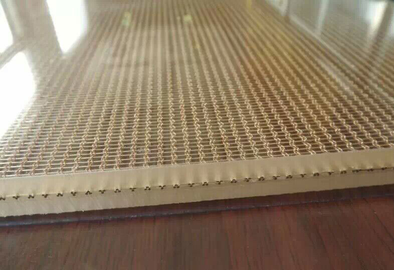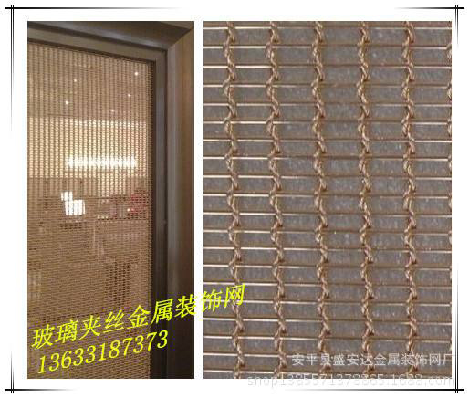 玻璃夾層金屬藝術絲網(wǎng)(建筑裝飾不銹鋼網(wǎng))是由不銹鋼棒材或不銹鋼纜線編織構(gòu)成的,按照織物的編織形式分成徑緯編織,螺旋套編等形式。夾在玻璃中間,具有美觀,起到防爆,防火,防止玻璃噴濺傷人的同時,又能起到很好的裝飾效果,現(xiàn)已被大量的用在重點工程上。玻璃夾層金屬藝術絲網(wǎng)具有不燃性,高強度,堅固,功能性強,易于維護,易于成型,超長的使用壽命,并能很好的對建筑結(jié)構(gòu)物起保護作用等特點,而且更符合環(huán)保及消防安全要求。其安裝簡便,快捷,可大面積運用,也可只作局部裝飾點綴。它的外形別致,典雅,裝飾效果生動,強烈,多樣,不同光線,不同環(huán)境,不同時間段,同觀察角度,其效果都不盡相同;可應用于多種場合與用途,不銹鋼特有的質(zhì)感和燈光的配合效果,彰顯典雅氣質(zhì),非凡個性,高貴品位。