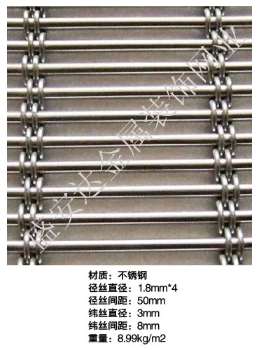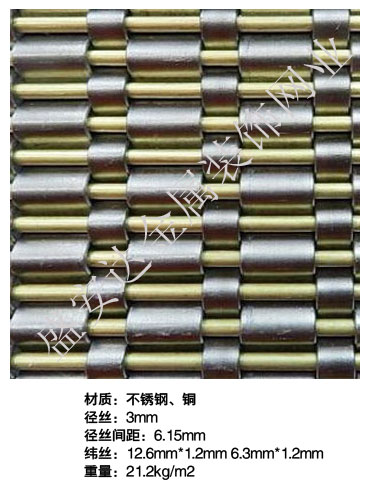 本產品,采用優質不銹鋼、黃銅、磷銅編織而成,從拉絲、捻股、合繩、拋光、漂洗、織網、銷售及售后服務等方面入手,逐漸形成生產與銷售一條龍服務。產品具有經久耐用,華麗高檔,科技含量高等特點,被廣泛應用于高級建筑的窗簾、吊頂、樓梯、電梯、豪華辦公大樓、賓館、豪華舞廳、營業大廳等建筑物的室內外裝飾,在燈光照射下金碧輝煌,典雅精致。